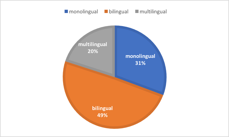 The second chart shows the frequency of different types of signs, divided into monolingual, bilingual and multilingual signs. Bilingual signs are with 49% the most frequent ones found, mainly being in German and English. Second, monolingual signs (31%) followed by multilingual signs (20%).