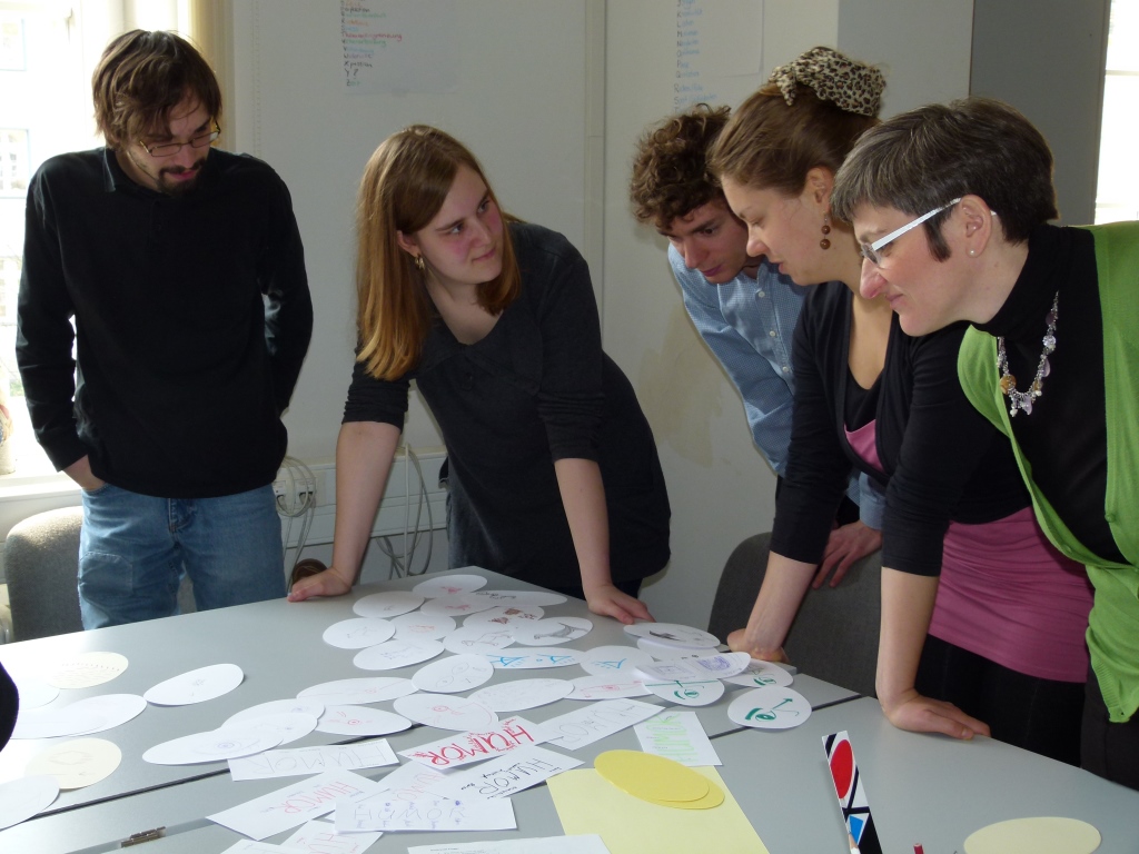 Die Seminargruppe teilte sich im Anschluss in Arbeitsteams auf, um die Umsetzung der TZI praktisch zu erproben und zu reflektieren. Die Aufgabe der Teams war dabei die Erstellung dieses Präsentationsportfolios. Es entstand innerhalb von zwei Tagen. Die Arbeit wurde dabei immer wieder von Reflexionsphasen zur Teamarbeit unterbrochen.