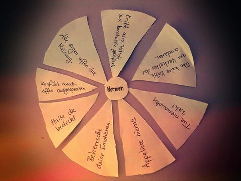Damit sich eine Gruppe zusammensetzt und sich eine Rollenverteilung herausbilden kann, ist es grundlegend nötig, dass dies unter gewissen Verhaltenserwartungen, also Normen geschieht, die für alle Teilnehmer gleichgeltend sind. Die Funktionen der Normen sind von enormer Wichtigkeit, da sie in einer neuen desorganisierten Situation Unsicherheiten und Ängste regulieren und zu der allgemeinen Orientierung der einzelnen Gruppenmitglieder dienen. Alle Beteiligten können durch ihre Verhaltensweisen, ihre Interessenbekundungen und ihre Möglichkeit der Einflussnahme, die Entwicklung und Gestalt der offendargelegten und unausgesprochenen Normen formen.
