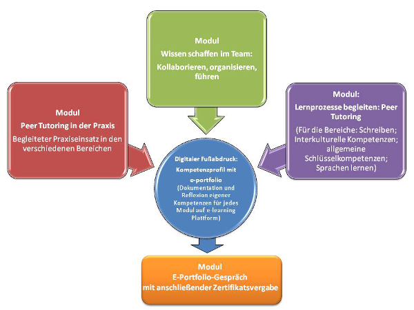 Die Module können auch einzeln dem Studium angerechnet werden. Es wird über die Ausbildung hinweg ein E-PORTFOLIO auf der E-Learning- Plattform MAHARA geführt, in dem die Erfahrungen reflektiert werden.